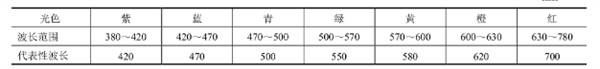不同波长的光射入眼睛后产生不同的颜色感觉,具有单一波长的光称为单色光,各种波长的单色光分别形成人们可能见到的各种最纯净、最饱和的颜色。不同色光按波长从短到长排列形成光谱,长波端是红光,随着波长的减小依次变为橙、黄、绿、青、蓝、紫。