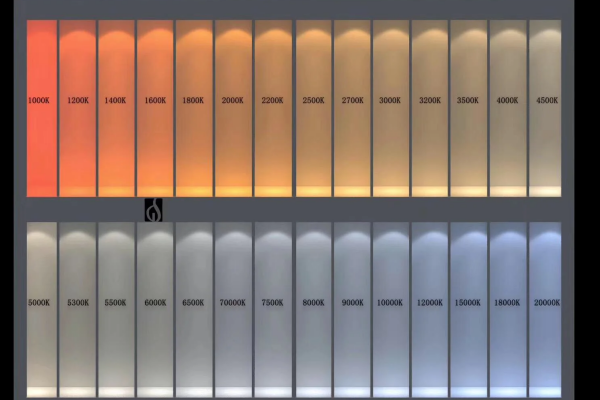 色温(单位:开尔文,K)用于描述光源发出的光线颜色,数值越低光色越暖(偏黄/红),数值越高光色越冷(偏蓝/白)。例如: