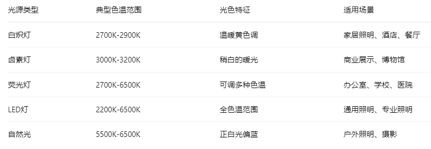 二、白炽灯与其他光源的色温对比