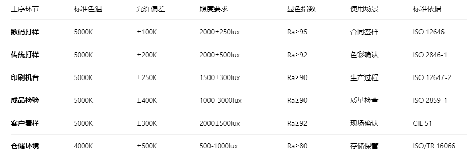 各环节色温要求对照表